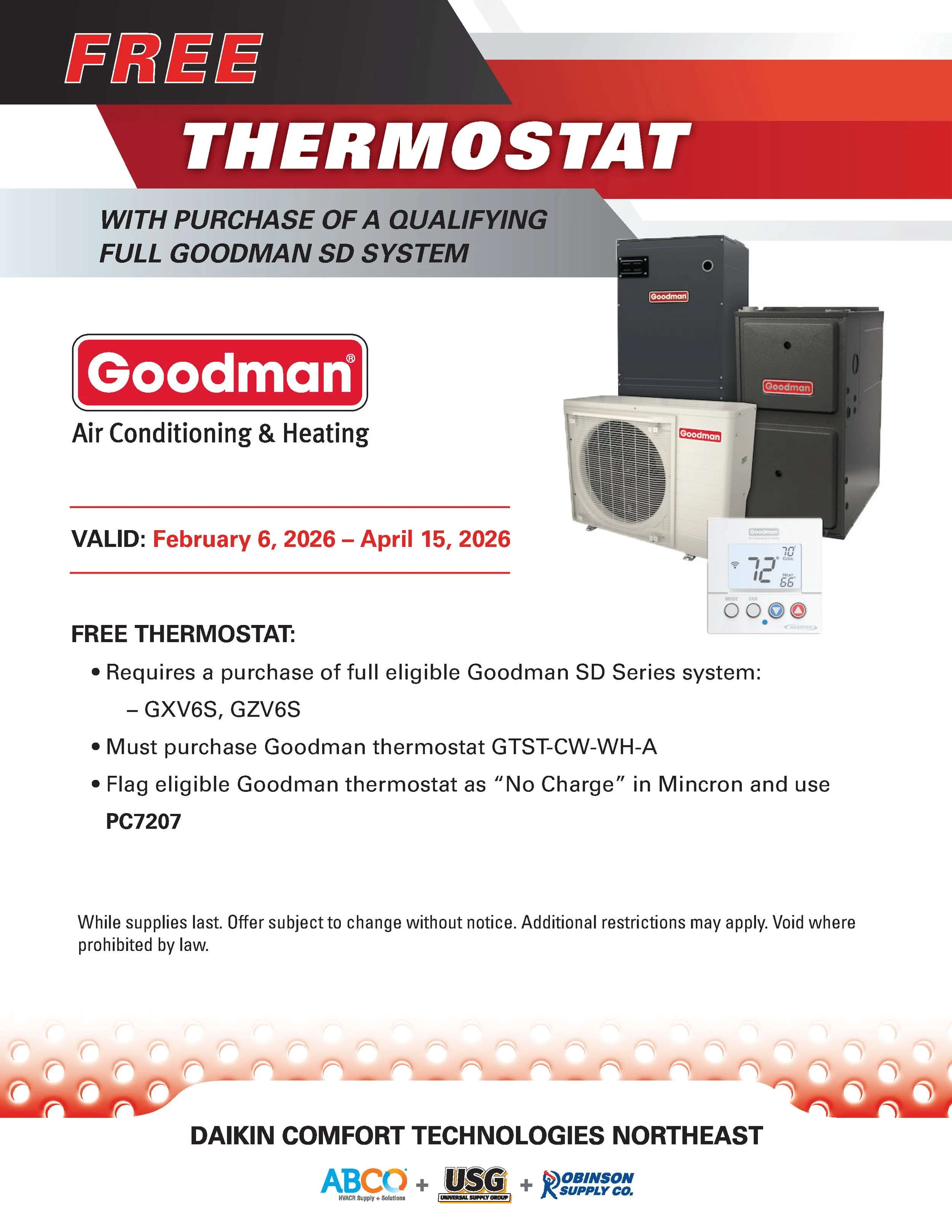 FREE Thermostat with purchase of qualifying Goodman SD System