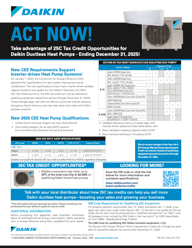 The new specifications mean more inverter-driven variable capacity systems now qualify for the Inflation Reduction Act (IRA) 25C Tax Credit!